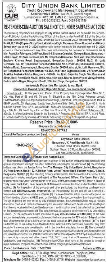 Immovable Properties Mortgaged to our Bank (Properties Owned by Mr. Gajendra Singh, S/o. Ramanand Singh) : Schedule-A: All that piece and Parcel of the Property bearing Corporation New No.5. Old Nos. Part of 58 and 59, 70 and 71 Situated at the 18th Cross Revenue Layout, Padmanabhanagara (South) Chikkallasandra Village, Uttarahalli Hobli, Bengaluru South Taluk in BBMP Ward No.55, Measuring: East to West, Northern Side-60 ft., Southern Side-60 ft., North to South Eastern Side-55 ft., Westem Side-55 ft., and Bounded on, East by-Site No. 72, West by Site No. 69. North by Part of Site Nos 58 and 59, South by Road. Schedule - B: 320 Sq. ft. of the Undivided Share in the Schedule A Property and Flat No. TF-A, in 3rd Floor, in Schedule A Property known as Prem Kutir measuring 1,150 Sq. ft. of Super Built-up Area
