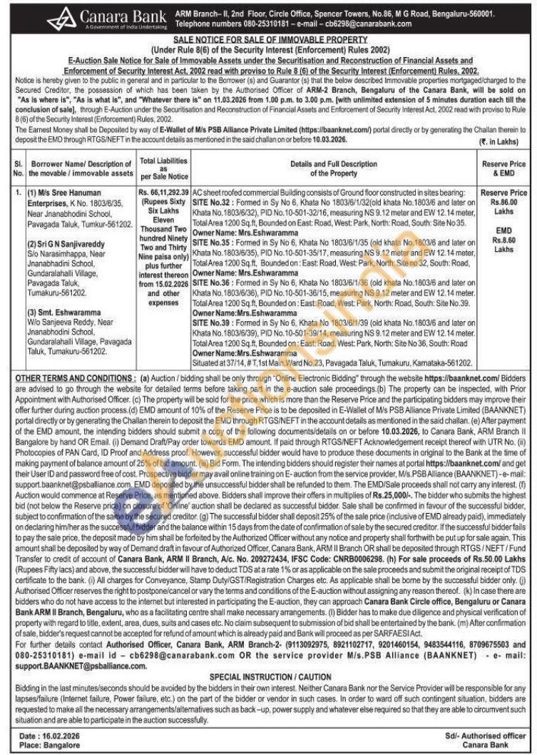 Authorised Officer ARM Branch-2 (9113092975 / 8921102717 / 9201460154 / 9483544116 / 8709675503 / 080-25310181