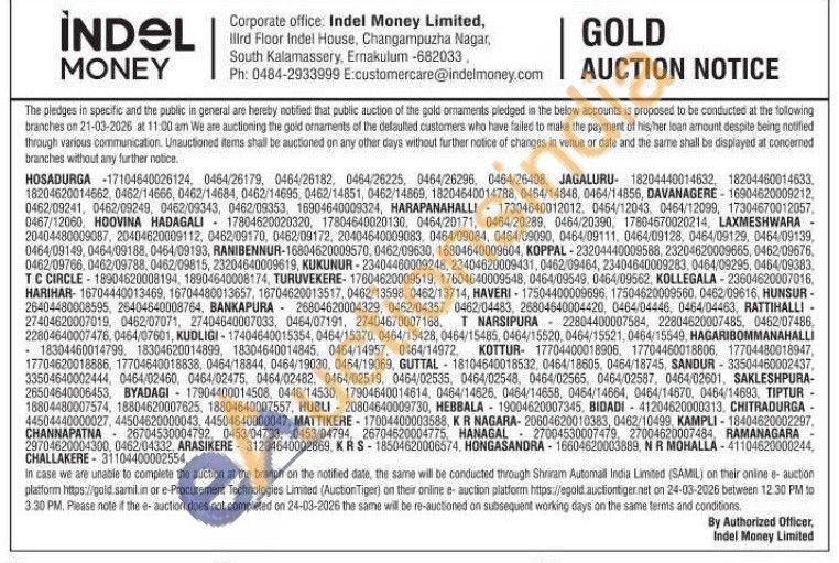 Indel money ltd Gold Auctions Auction in Ernakulam