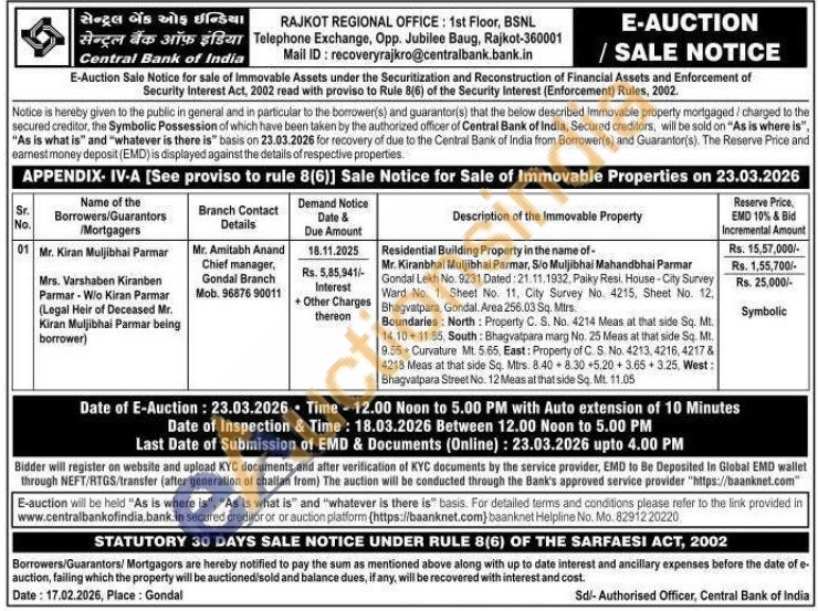 Residential Building Property in the name of- Mr. Kiranbhai Muljibhai Parmar, S/o Muljibhai Mahandbhai Parmar Gondal Lekh No. 9231 Dated: 21.11.1932. Paiky Resi. House-City Survey Ward No. 1. Sheet No. 11, City Survey No. 4215, Sheet No. 12, Bhagvatpara, Gondal. Area 256.03 Sq. Mtrs. Boundaries: North: Property C. S. No. 4214 Meas at that side Sq. Mt. 14.10-11.85, South: Bhagvatpara marg No. 25 Meas at that side Sq. Mt. 9.55+ Curvature Mt 5.65. East: Property of C. S. No. 4213, 4216, 4217 & 4218 Meas at that side Sq. Mtrs: 8.408.30 +5.20 +3.65 +3.25, West: Bhagvatpara Street No. 12 Meas at that side Sq. Mt. 11.05