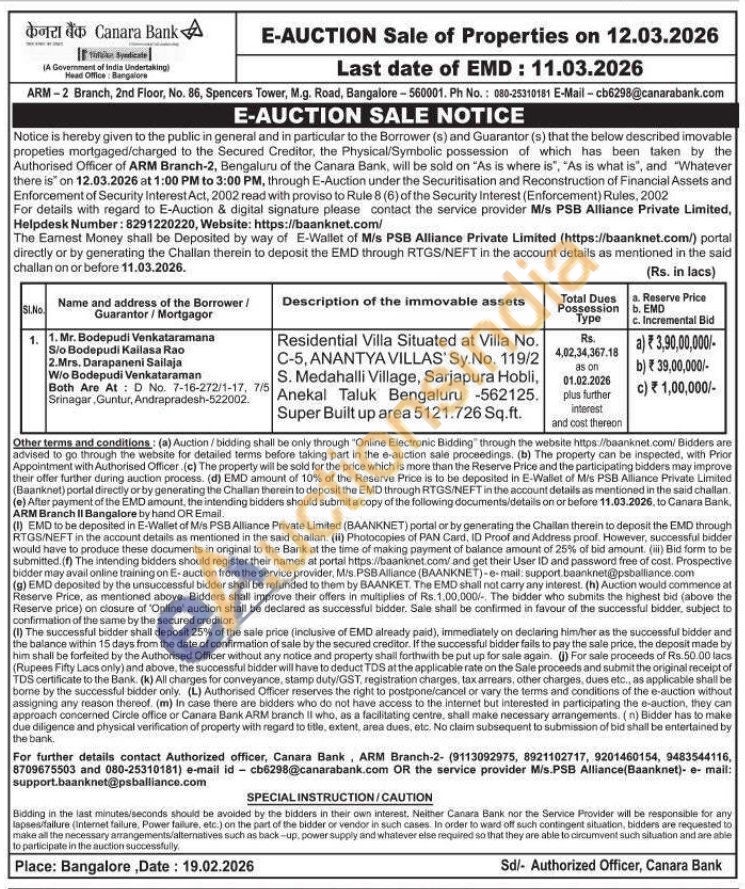 Residential Villa Situated at Villa No. C-5, ANANTYA VILLAS' Sy. No. 119/2 S. Medahalli Village, Sarjapura Hobli, Anekal Taluk Bengaluru -562125. Super Built up area 5121.726 Sq.ft.