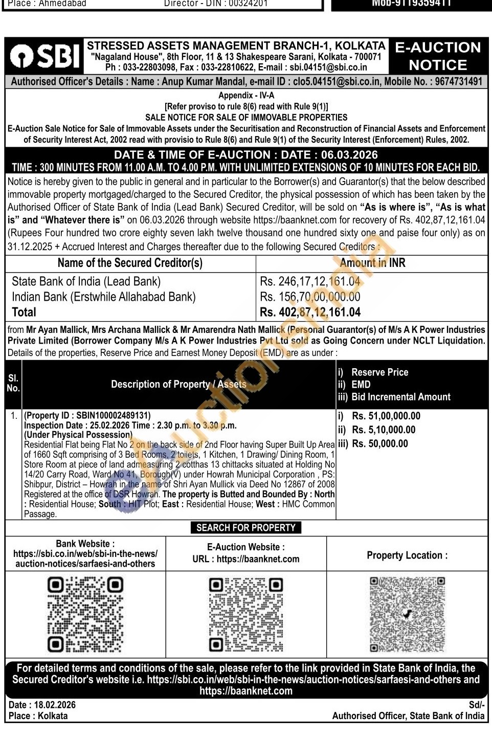 Anup Kumar Mandal, e-mail ID: clo5.04151@sbi.co.in, Mobile No.: 9674731491