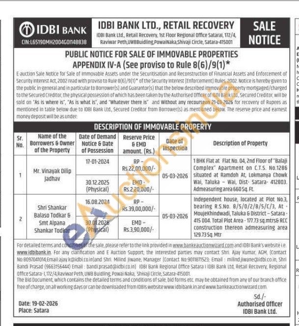 Independent house, located at Plot No.3, F bearing R.S.No. 8/5/0/2/8/5/C/3, At-Moujekhindwadi, Taluka & District-Satara 415 004. Total Plot Area-177.73 sq.mtrs& RCC construction thereon admeasuring area 129.735q. Mtr