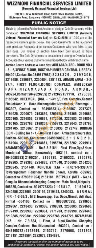 Wizzmoni Financial Services Limited Gold Auctions Auction in Bengaluru
