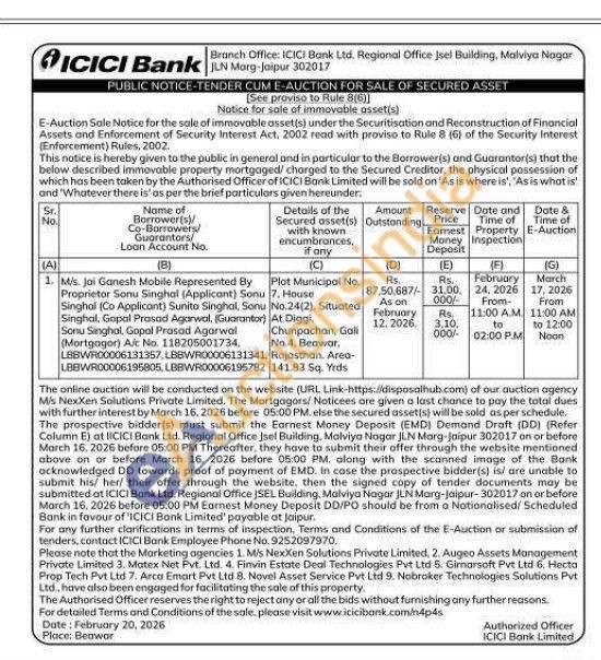 Plot Municipol No. 7, House No.24(2). Situated At Diggi, Chunpachan, Gali No.4, Beawar, Rajasthan. Area-141.83 Sq. Yrds