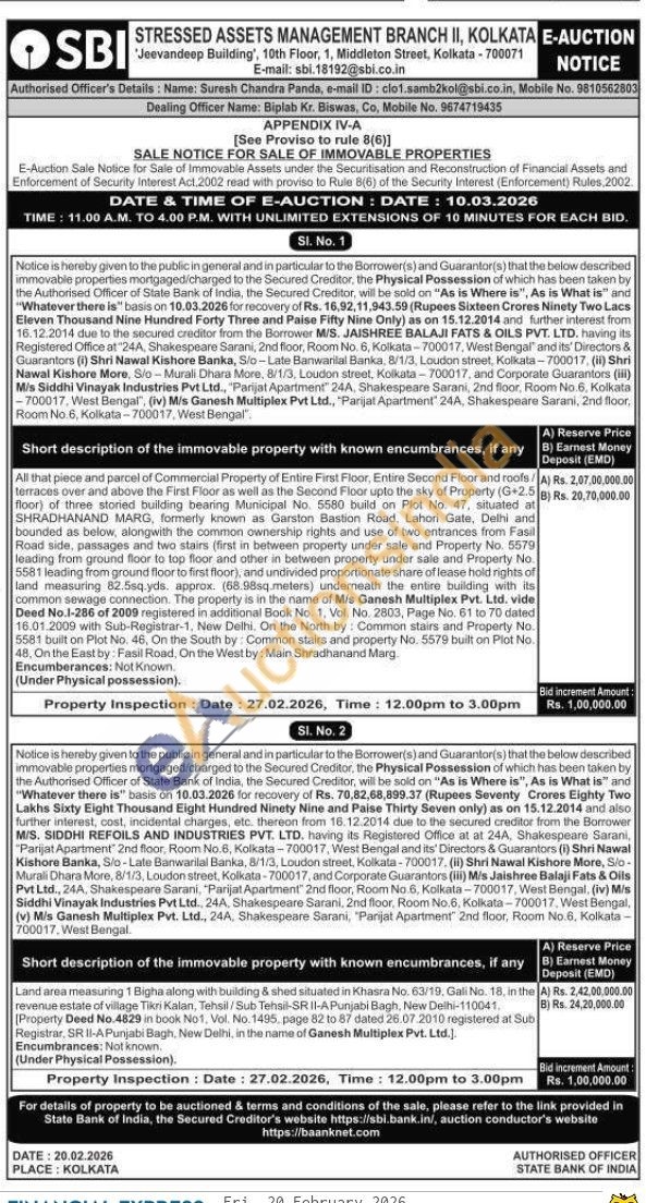 All that piece and parcel of Commercial Property of Entire First Floor, Entire Second Floor and roofs/terraces over and above the First Floor as well as the Second Floor upto the sky of Property (G-2.5 floor) of three storied building bearing Municipal No. 5580 build on Plot No. 47, situated at SHRADHANAND MARG, formerly known as Garston Bastion Road, Lahori Gate, Delhi and bounded as below, alongwith the common ownership rights and use of two entrances from Fasil Road side, passages and two stairs (first in between property under sale and Property No. 5579 leading from ground floor to top floor and other in between property under sale and Property No 5581 leading from ground floor to first floor), and undivided proportionate share of lease hold rights of land measuring 82.5sq.yds. approx. (66.98sq.meters) underneath the entire building with its common sewage connection. The property is in the name of Mis Ganesh Multiplex Pvt. Ltd. vide Deed No.1-286 of 2009 registered in additional Book No. 1, Vol. No. 2803, Page No. 61 to 70 dated 16.01.2009 with Sub-Registrar-1, New Delhi. On the North by: Common stairs and Property No. 5581 built on Plot No. 46. On the South by: Common stairs and property No. 5579 built on Plot No. 48. On the East by: Fasil Road, On the West by: Main Shradhanand Marg
