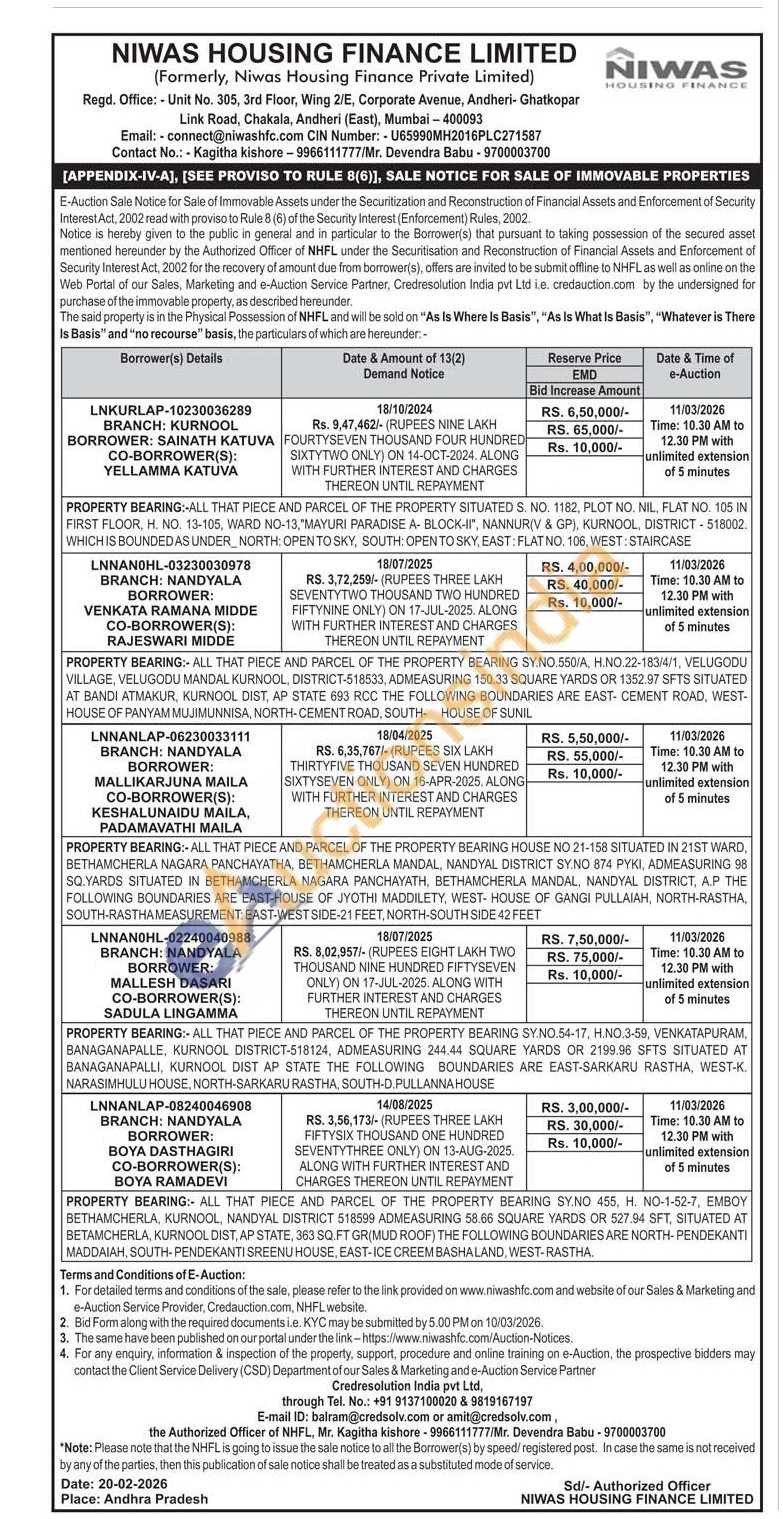 Contact Authorized Officer of NHFL, Mr. Kagitha kishore - 9966111777/Mr. Devendra Babu - 9700003700