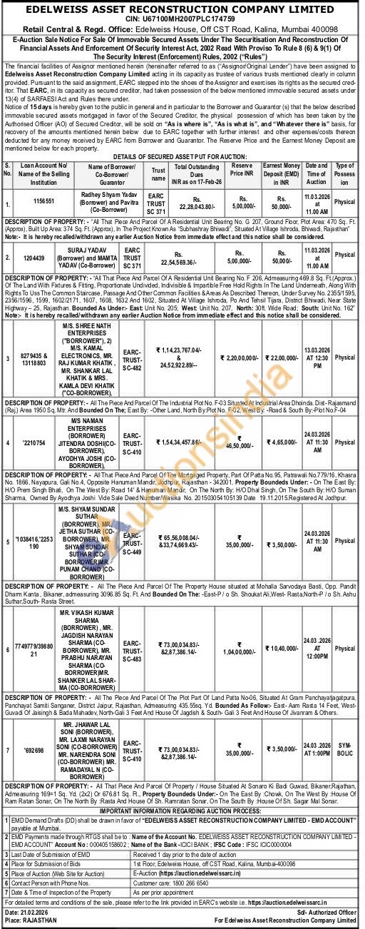 DESCRIPTION OF PROPERTY: All The Piece And Parcel Of The Industrial Plot No. F-03 Situated At Industrial Area Dhoinda. Dist-Rajasmand (Raj.) Area 1950 Sq. Mtr. And Bounded On The; East By:-Other Land, North By:Plot No. F-02, West By:-Road & South By:-Plot No.F-04