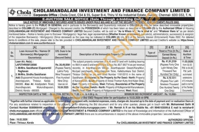 The subject property comprises of 4.45 ares of land with building bearing no 8/A in ward 2 and everything in Survey No. 85/7 (85/7-8 as per revenue records), in Ananthapuram Village. Ananthapuram Desom Kara Mur Muriyad panchayath, Mukundapuram Taluk, Kallettumkara Sub District, Thrissur District as per sale deed Number 1161/2010 in the name of Sasidharan. Boundaries of The Property As Per Deed:-North: Property of Karunakaran, South: Property of illickal Thonan Kutty And Kalan Shaj East: Property of Pradeep, West: Pathway. Boundaries of The Property As Per Location Sketch:- North: Property of Kollaparambil Karunakaran, South: Road, East: Property of Paliparambil Pramod West: Roed