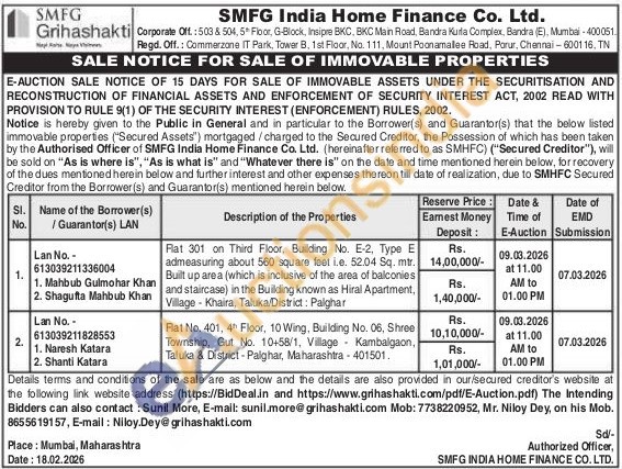 Flat 301 on Third Floor, Building No. E-2, Type E admeasuring about 560 square feet Le. 52.04 Sq. mtr. Built up area (which is inclusive of the area of balconies and staircase) in the Building known as Hiral Apartment, Village Khaira, Taluka/District: Palghar