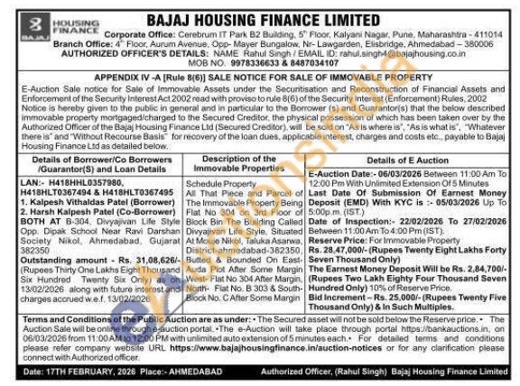 Schedule Property All That Piece and Parcel of The Immovable Property Being Flat No 304 on 3rd Floor of Block Bin The Building Called Divyajivan Life Style, Situated At Mouje Nikol, Taluka Asarwa, District-ahmedabad-382350, Butted & Bounded On East Auda Plot After Some Margin West-Flat No 304 After Margin, North- Fiat No. B 303 & South-Block No. C After Some Margin