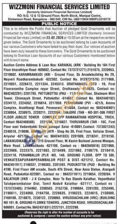 Wizzmoni Financial Services Limited Gold Auctions Auction in Bengaluru