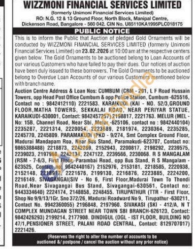 Wizzmoni Financial Services Limited Gold Auctions Auction in Bengaluru