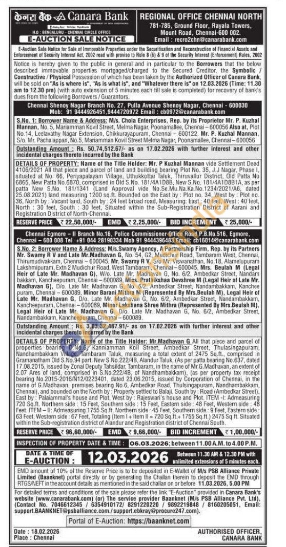 All that piece and parcel of land and building bearing Plot No. 35, J.J Nagar, Phase 1, situated at No. 66, Periyapalayam Village, Uthukkottai Taluk, Thiruvallur District, Old Patta No 6865, New Patta No.6870, comprised in Old S.No. 181/4A1D8B, New S.No. 181/4A1D8B1A, as per patta New S.No. 181/1341 (Land Approval vide No.Se. Mu. Na.Ka. No. 1234/2021/A6, dated 25.08.2021) land measuring 1200 sq.ft. Bounded on the East by: Plot no. 34, West by: Plot no. 36, North by: Vacant land, South by: 24 feet broad road, Measuring: East: 40 feet, West: 40 feet, North 30 feet, South: 30 feet, Situated within the Sub-Registration District of Aarani and Registration District of North-Chennai.