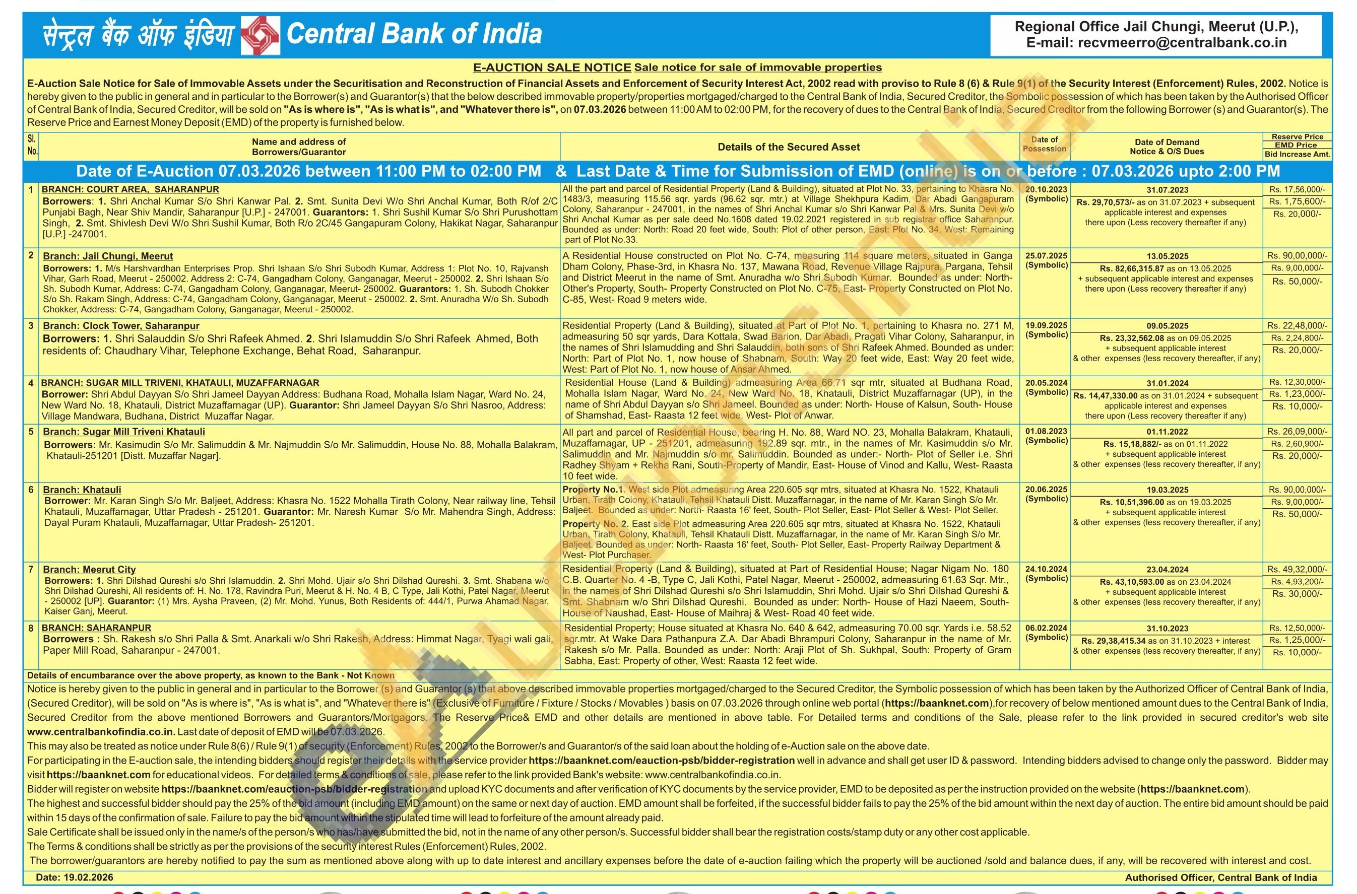 Contact E-mail: recvmeerro@centralbank.co.in