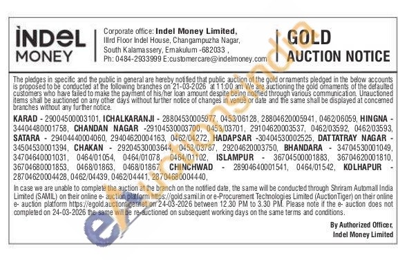 Indel money ltd Gold Auctions Auction in Ernakulam