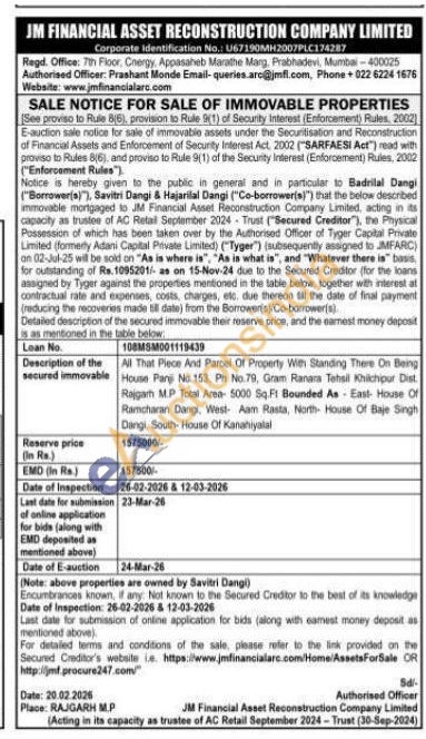Al That Piece And Parcel Of Property With Standing There On Being House Panji No. 153. Ph No.79, Gram Ranara Tehsil Khichipur Dist. Rajgarh M.P Total Area 5000 Sq.Ft Bounded As East House Of Ramcharan Dangi, West- Aam Rasta, North House Of Baje Singh Dangi, South- House Of Kanahiyalal