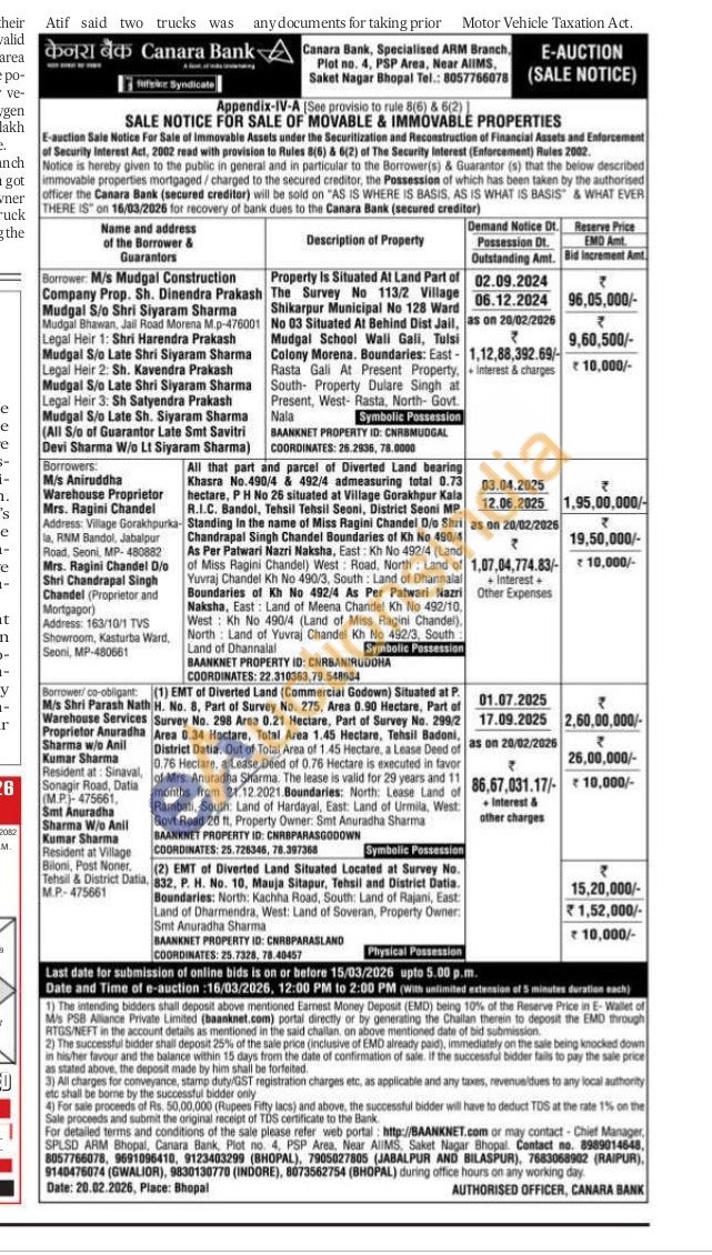 All that part and parcel of Diverted Land bearing Khasra No.490/4 & 492/4 admeasuring total 0.73 hectare, P H No 26 situated at Village Gorakhpur Kala R.I.C. Bandol, Tehsil Tehsil Seoni, District Seoni MP. Standing in the name of Miss Ragini Chandel Dio Shri Chandrapal Singh Chandel Boundaries of Kh No 490/4 As Per Patwari Nazri Naksha, East: Kh No 492/4 (Land of Miss Ragini Chandel) West Road, North Land of Yuvraj Chandel Kh No 490/3, South: Land of Dhannalal Boundaries of Kh No 492/4 As Per Patwari Nazri Naksha, East: Land of Meena Chandel Kh No 492/10, West: Kh No 490/4 (Land of Miss Ragini Chandel North Land of Yuvraj Chandel Kh No 482/3, South Land of Dhannalal Symbolic Possession