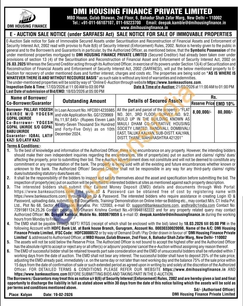 Mr. Deepak Kamble, Mobile No. 8080679059 & e-mail ID: deepak.kamble@dmihousingfinance.in
