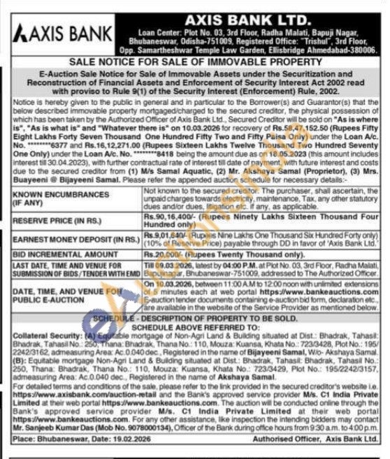 Collateral Security: (A) Equitable mortgage of Non-Agri Land & Building situated at Dist.: Bhadrak, Tahasil Bhadrak, Tahasil No. 250, Thana: Bhadrak, Thana No.: 110, Mouza: Kuansa, Khata No.: 723/3428, Plot No.: 195/2242/3162, admeasuring Area: Ac.0.040 dec, Registered in the name of Bijayeeni Samal, Wio-Akshaya Samal. (B): Equitable mortgage Non-Agri Land & Building situated at Dist: Bhadrak, Tahasil: Bhadrak, Tahasil No. 250, Thana: Bhadrak, Thana No.: 110, Mouza: Kuansa, Khata No.: 723/3429, Plot No.: 195/2242/3157, admeasuring Area: Ac 0.040 dec. Registered in the name of Akshaya Samal