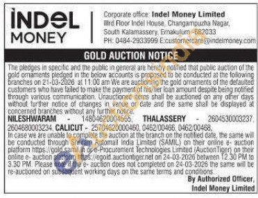 Indel money ltd Gold Auctions Auction in Ernakulam
