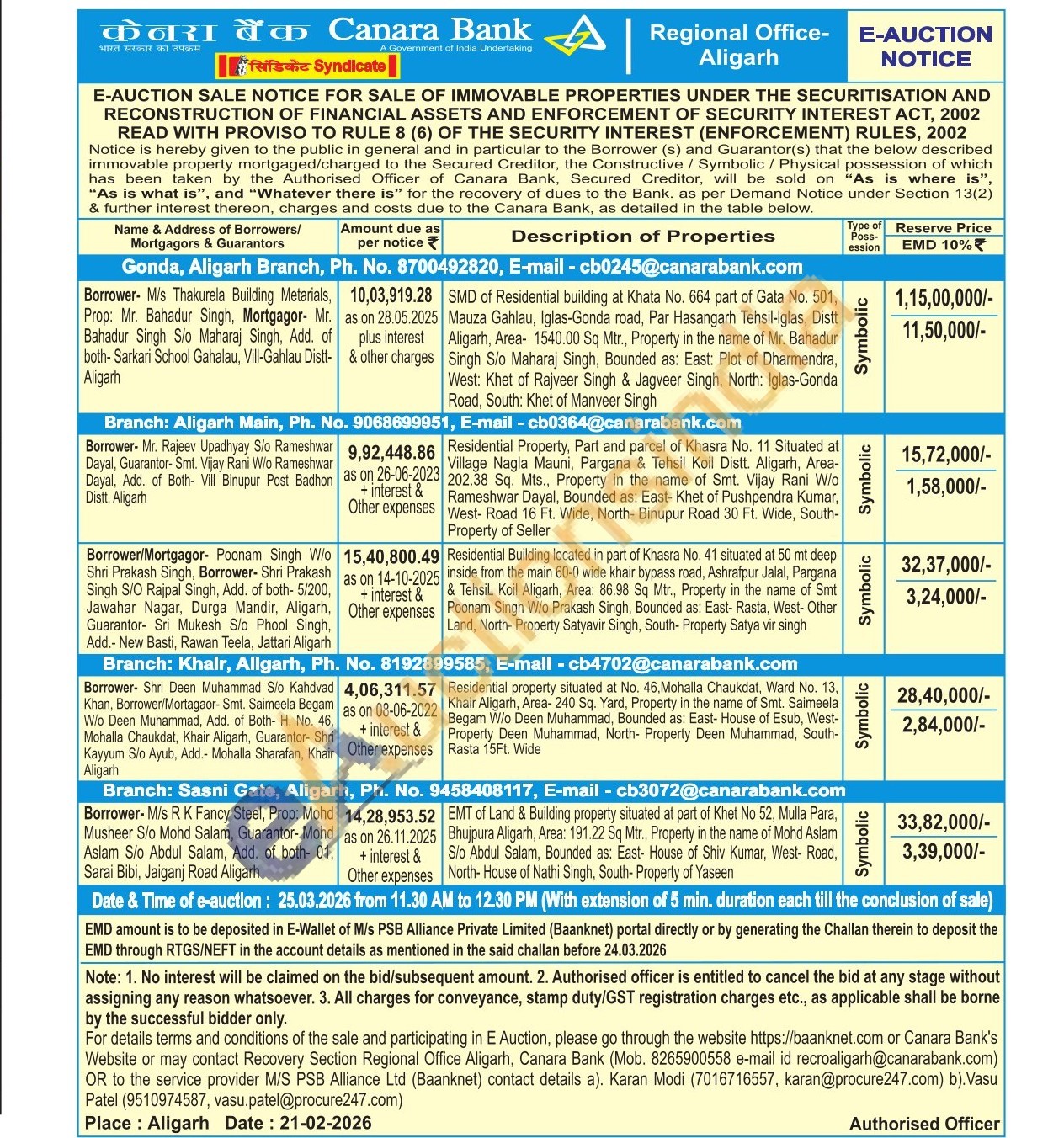 Residential property situated at No. 46, Mohalla Chaukdat, Ward No. 13, Khair Aligarh, Area- 240 Sq. Yard, Property in the name of Smt. Saimeela Begam W/o Deen Muhammad, Bounded as: East-House of Esub, West-Property Deen Muhammad, North- Property Deen Muhammad, South-Rasta 15Ft. Wide