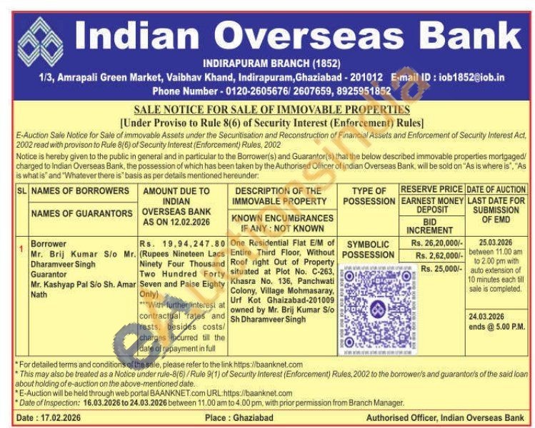 One Residential Flat E/M of Entire Third Floor, Without Roof right Out of Property situated at Plot No. C-263, Khasra No. 136, Panchwati Colony, Village Mohmasaray, Urf Kot Ghaizabad-201009 owned by Mr. Brij Kumar Sio Sh Dharamveer Singh