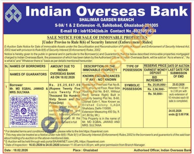 Residential Freehold Flat No-B. 60/3, at Ground Floor, Rear Side Abutting Plot No. B-61, Without Roof Terrace Right) Built in property bearing Plot No. B-60. Dilshad Extn-1, Now Known as Dilshad Colony ILAQA Shahdara, Delhi-110095. Extension Measuring 450 Sq. ft. (41,80 Sq. Mt.)