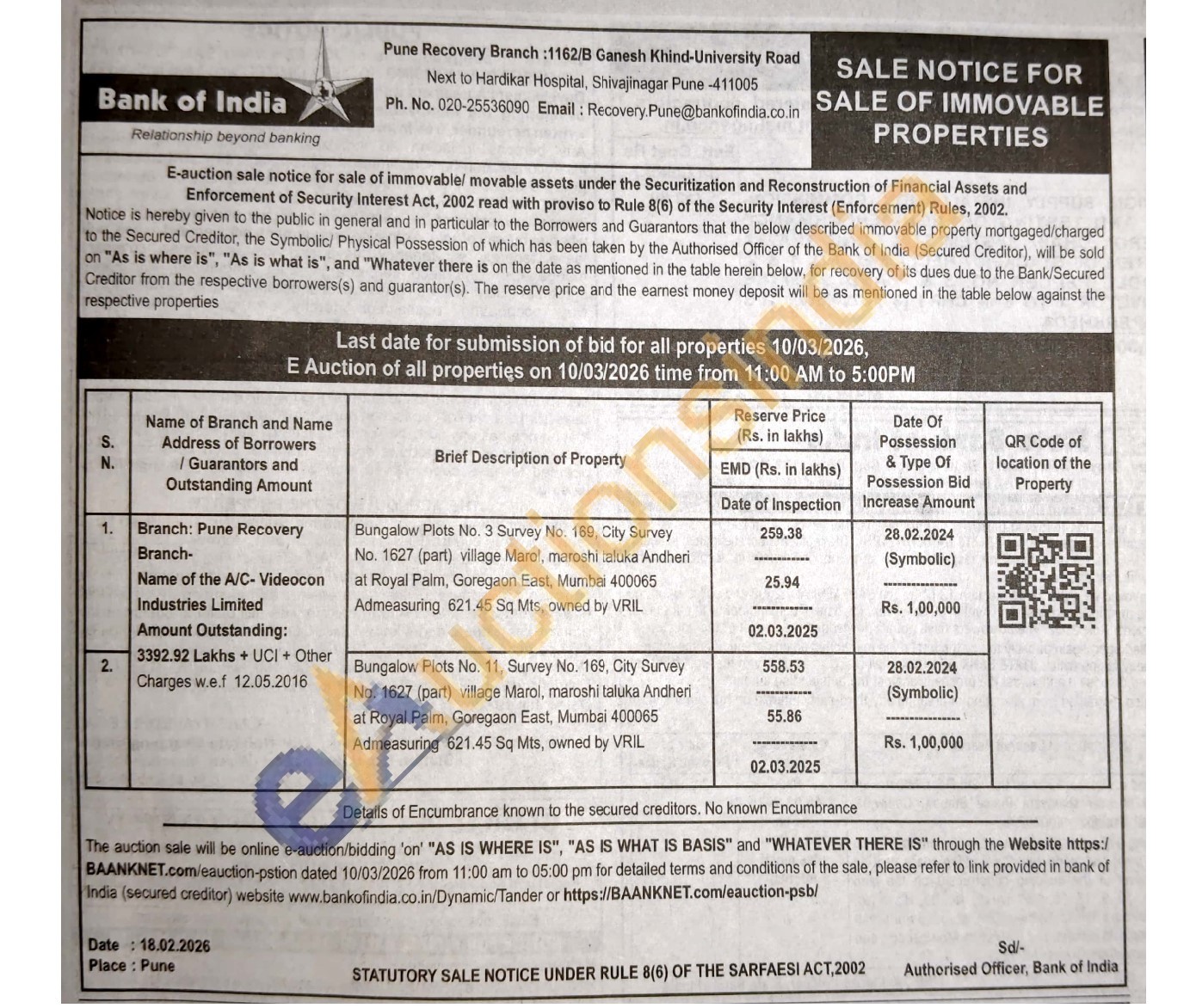 Bungalow Plots No. 11, Survey No. 169, City Survey No. 1627 (part) village Marol, maroshi taluka Andheri at Royal Palm, Goregaon East, Mumbai 400065 Admeasuring 621.45 Sq Mts, owned by VRIL