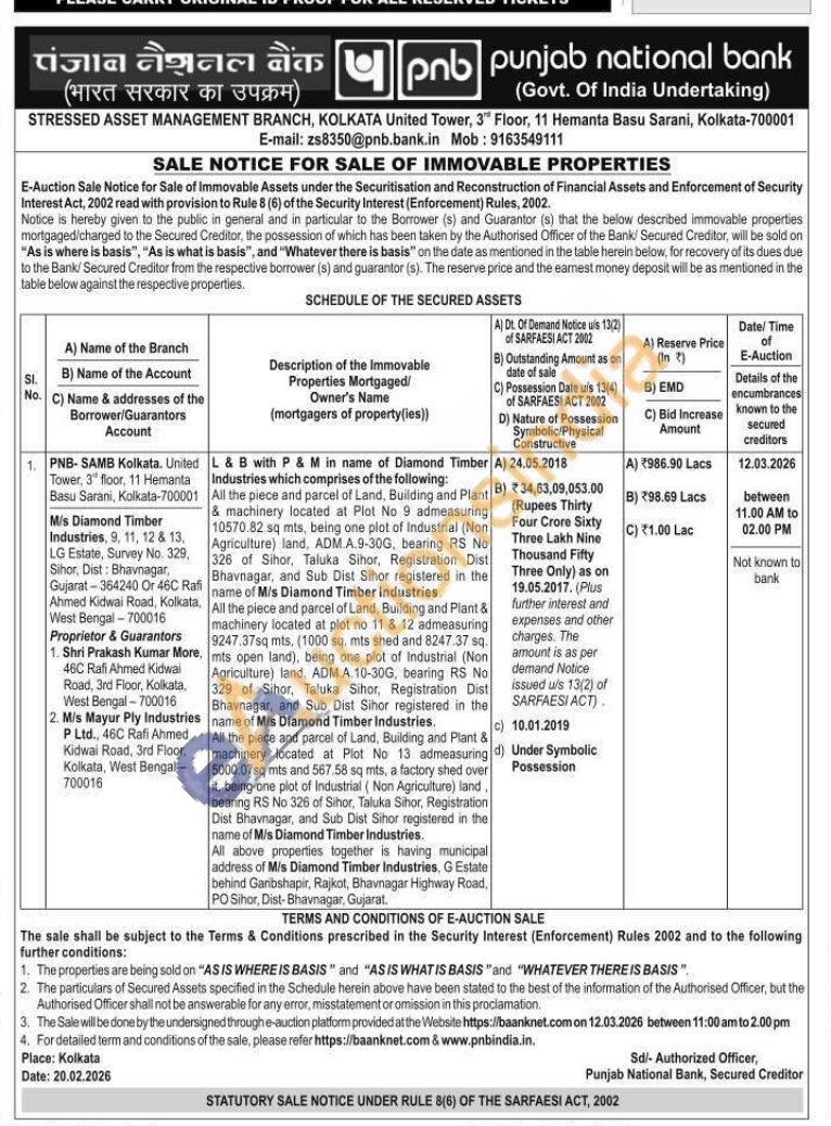 L & B with P & M in name of Diamond Timber Industries which comprises of the following All the piece and parcel of Land, Building and Plant & machinery located at Plot No 9 admeasuring 10570.82 sq mts, being one plot of Industrial (Non Agriculture) land, ADM.A.9-30G, bearing RS No 326 of Sihor, Taluka Sihor, Registration Dist Bhavnagar, and Sub Dist Sihor registered in the name of M/s Diamond Timber Industries.All the piece and parcel of Land, Building and Plant & machinery located at plot no 11 & 12 admeasuring 9247.37sq mts. (1000 sq. mts shed and 8247.37 sq. mts open land), being one plot of Industrial (Non Agriculture) land, ADM.A.10-30G, bearing RS No 329 of Sihor, Taluka Sihor, Registration Dist Bhavnagar, and Sub Dist Sihor registered in the name of M/s Diamond Timber Industries.All the piece and parcel of Land, Building and Plant & machinery located at Plot No 13 admeasuring 5000.07sq mts and 567.58 sq mts, a factory shed over it, being one plot of Industrial (Non Agriculture) land. bearing RS No 326 of Sihor, Taluka Sihor, Registration Dist Bhavnagar, and Sub Dist Sihor registered in the name of M/s Diamond Timber Industries.