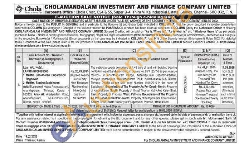 Mr. Mohammed Salih M 8590966444 and Email: mohammedsm@chola.murugappa.com>/Mr. Renish A R 9946103599.& E