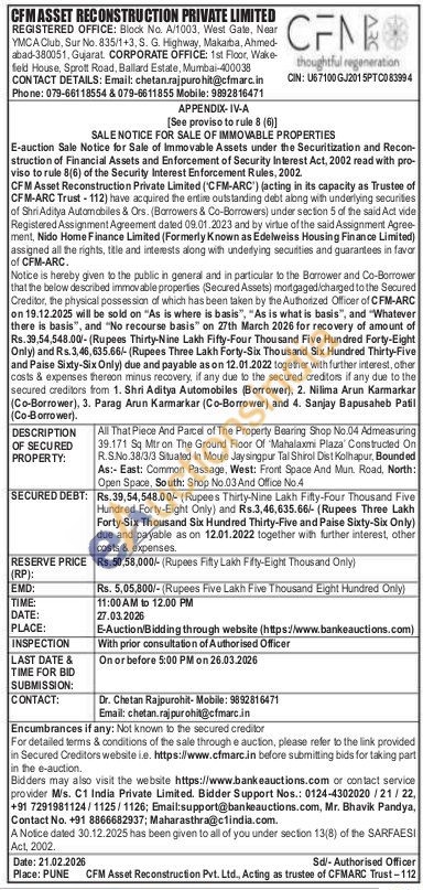 All That Piece And Parcel of The Property Bearing Shop No.04 Admeasuring 39.171 Sq Mtron The Ground Floor Of Mahalaxmi Plaza Constructed On R.S.No.38/3/3 Situated In Mouje Jaysingpur Tal Shirol Dist Kolhapur, Bounded As:- East: Common Passage, West: Front Space And Mun Road, North: Open Space, South: Shop No.03 And Office No.4