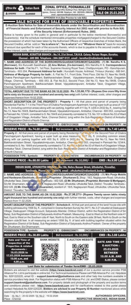 2) All that part and parcel of the land house site with building admeasuring 1558 Sq. ft, comprised in Grama-Kantam Survey No.34/11, No.3-21 situated at Daskuppam Vilage. Daskuppam Village Account, Satyavedu Mandal, Chittoor District, within the Registration District of Srni Balaji Sub Registration District of Satyavedu Andhra Pradesh. Measuring-East to West on the Northern side 41 feet. East to West on the Southom site-41 feet, North to South on the Eastern side 38 feel. North to South on the Western side38 feet. In all measuring an extent 1588 Sq ft of land with building together situated within the Registration District of Sri Balaji, Sub Registration District of Satyavedu Andhra Pradesh. Owner of the property Mr. Dhurkaram Sio-Dharmaram