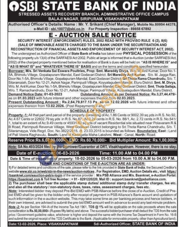 Mr. Y. Srikant 80994 44378, e-Mail ID: sbi,10077@sbi.co.in