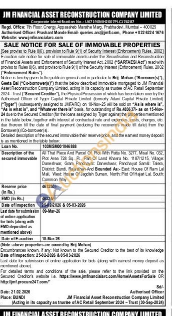 All That Piece And Parcel Of Plot With Patta No. 3277, Misal No. 032, Plot Area 728 Sq. P., Part Of Land Khasra No. 1187/1215, Village: Daneshwar, Gram Panchayat: Daneshwar, Panchayat Samiti: Talera, District: Bund, Rajasthan-And Bounded As:- East: House Of Ram Lal Mali, West House Of Jagdish Suman, North: Plot Of Hajari Lal, South: Common Way