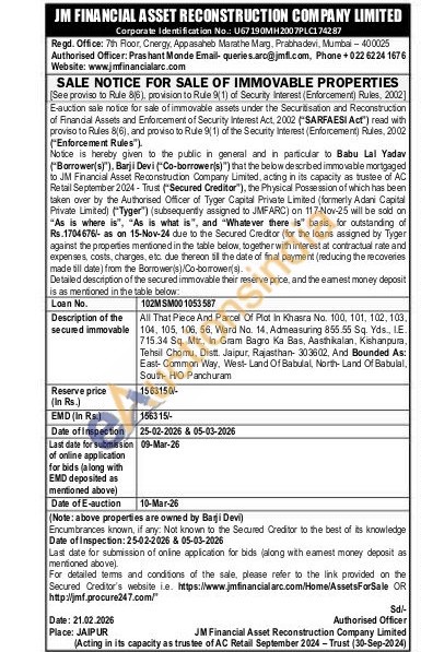 All That Piece And Parcel Of Plot In Khasra No. 100, 101, 102, 103, 104, 105, 106, 56, Ward No. 14, Admeasuring 855.55 Sq. Yds., IE. 715.34 Sq. Mtr., in Gram Bagro Ka Bas, Aasthikalan, Kishanpura, Tehsil Chomu, Distt. Jaipur, Rajasthan- 303602, And Bounded As: East-Common Way, West- Land Of Babulal, North-Land Of Babulal, South HIO Panchuram