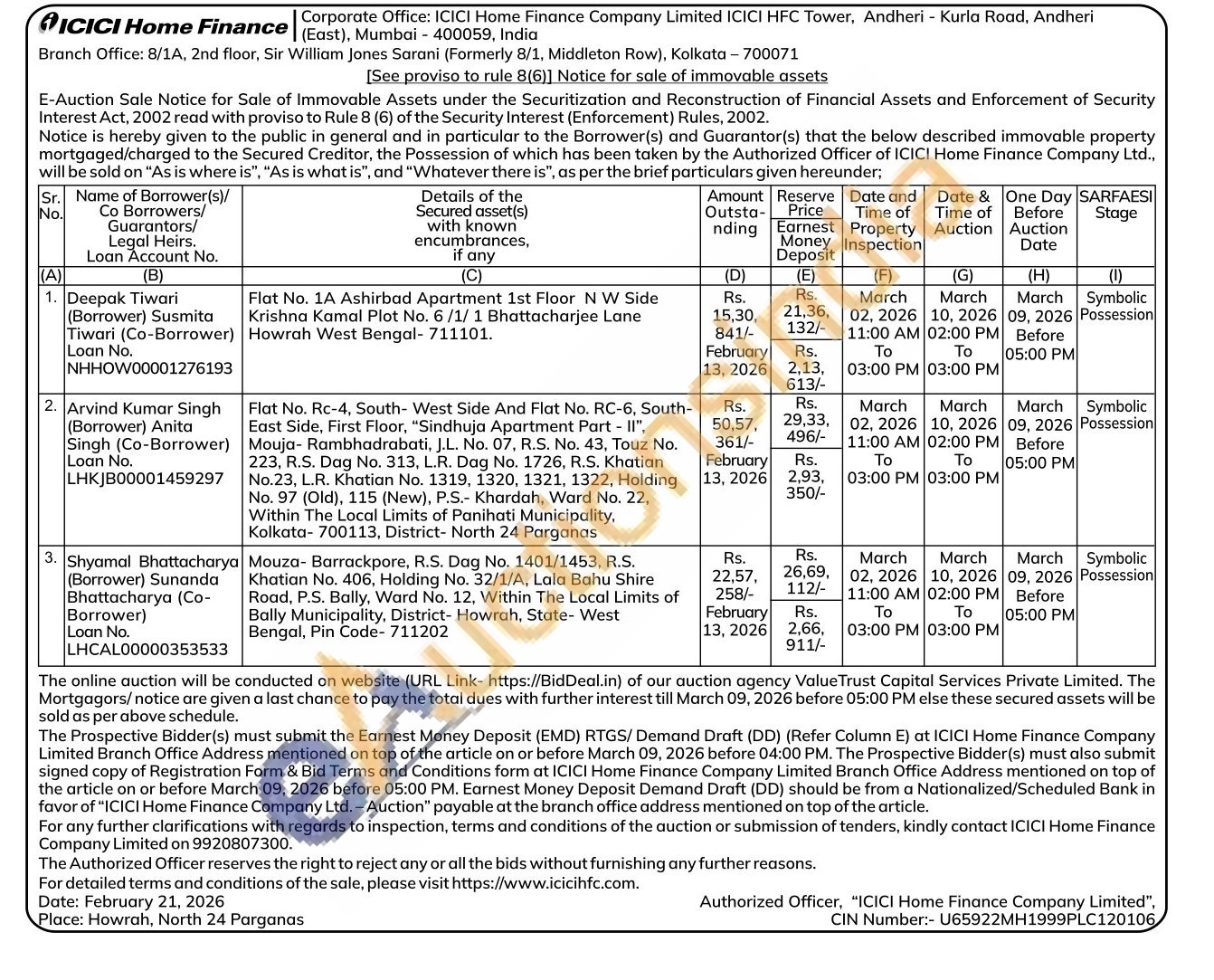 Flat No. 1A Ashirbad Apartment 1st Floor N W Side Krishna Kamal Plot No. 6/1/1 Bhattacharjee Lane Howrah West Bengal-711101