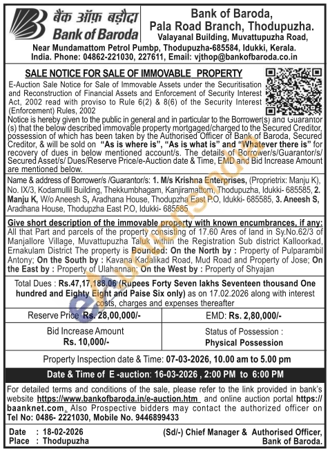 Contact Authorized officer on Tel No: 0486-2221030, Mobile No. 9446899433