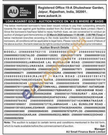 AU Small Finance Bank Gold Auctions Auction in Jaipur