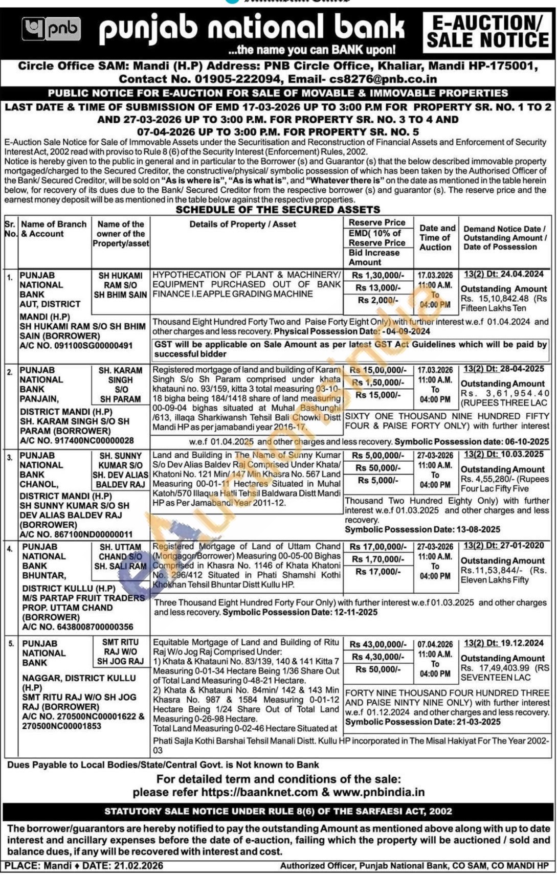 Equitable Mortgage of Land and Building of Ritu Raj W/o Jog Raj Comprised Under: 1) Khata & Khatauni No. 83/139, 140 & 141 Kitta 7 Measuring 0-01-34 Hectare Being 1/36 Share Out of Total Land Measuring 0-48-21 Hectare. 2) Khata & Khatauni No. 84min/ 142 & 143 Min Hectare Being 1/24 Share Out of Total Land Khasra No. 987 & 1584 Measuring 0-01-12 Measuring 0-26-98 Hectare. Total Land Measuring 0-02-46 HectarePhati Sajla Kothi Barshai Tehsil Manali Distt. Kullu HP incorporated in The Misal Hakiyat For The Year 2002-03