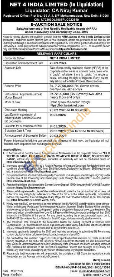 Sale of non-readily realizable assets (NRRA) of the corporats debtor on as 'is where is basis', 'as is what is basis, whatever there is basis, no recourse basis', including the right of itigation, if any, as are fully set out in the Sales Process Memorandum