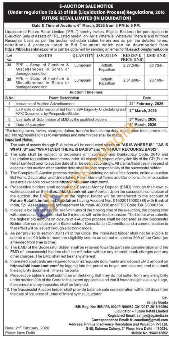 Lot No.39 : ASSETS: PPE Scrap of Furniture & Miscellaneous in Scrap or damaged condition