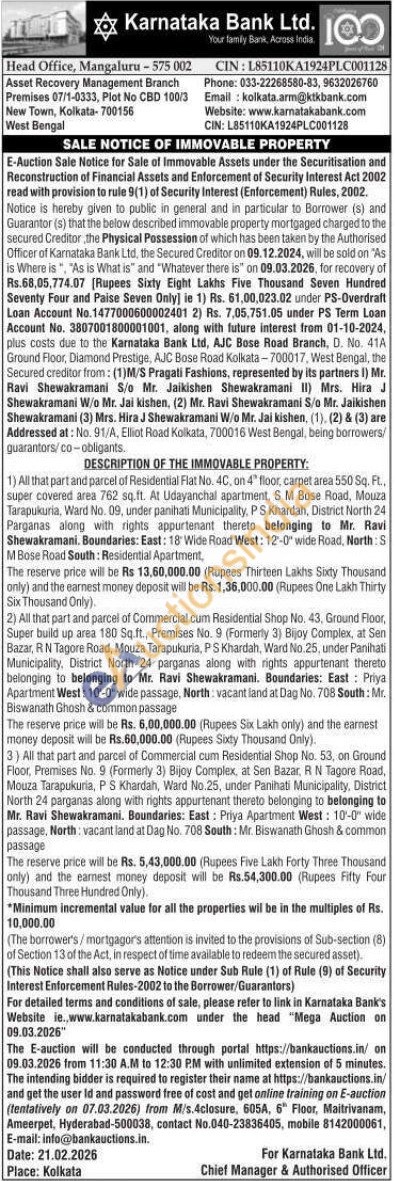 Tarapukuria, Ward No. 09, under panihati Municipality, PS Khardah, District North 24. Parganas along with rights appurtenant thereto belonging to Mr. Ravi Shewakramani. Boundaries: East: 18 Wide Road West: 12-0' wide Road, North: S M Bose Road South: Residential Apartment