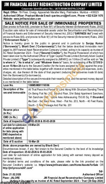 All That Piece And Parcel Of Land Along With Structure Standing There On Being Flat No. 202, Second Roor, Shri Balaji Apartment Sanchore, Teh Sanchore Distt. Jalore Area Admeasuring 750.00 Sq. Ft Bounded As East-Set Back Area, West Rat No. 203. North-40 Feet Rasta, South-5 Feet Passage And Rat No. 201