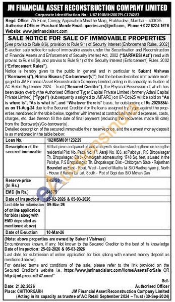 All that piece and parcel of land along with structure standing there on being the residential Pid. No. Patta No. 17, Aaraji No. 803, at Palotiya, P.S Bhopalsagar Th. Bhopalsagar Dist-Chittorgarh admeasuring 1748 Sq. feet, situated in the Palotiya, P.S Bhopalsagar, Th. Bhopalsagar, Dist-Chittorgarh State-Rajasthan Bounded as East-Road, West-Land of Madhu lal S/O Radheshyam, North -House if Kasna Lal Jat. South-Plot of Gopi das SIO Mohan Das