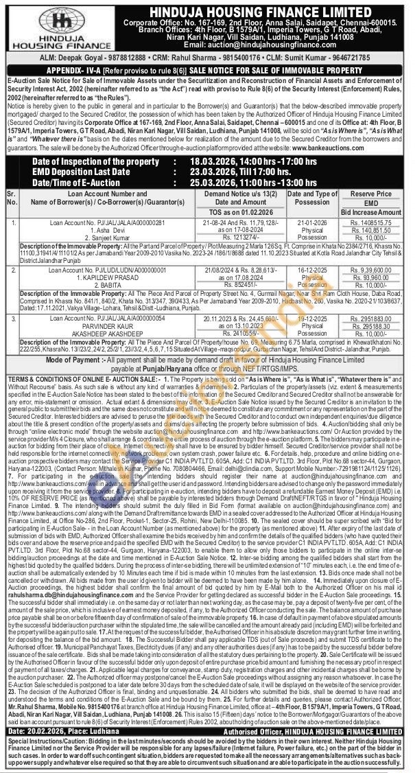 Description of the Immovable Property: All The Piece And Parcel of Property Street No. 4, Gurmail Nagar, Near Shri Ram Cloth House, Daba Road, Comprised In Khasra No. 841/1, 840/2, Khata No. 313/347, 390/433, As Per Jarrabandi Year 2009-2010, Hadbast No. 260, Vasika No. 2020-21/103/8637. Dated: 17.11.2021, Vakya Village-Lohara, Tehsil & Distt-Ludhiana, Punjab.