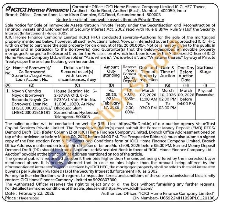 House Bearing No. 6-2-573/A Old, 6-2-573/A/1 Vide Ptin No. 1180611020, At New Bhoiguda Slum Secundrabad Hyderabad Telangana-500003