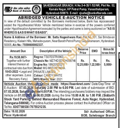 Regno: TS07ESTR0963 Chassis No: MZ7HD3D1EH058746 Engine No: 18M20520211 Model: MG MOTOR INDIA PRIVATE LIMITED Colour: CANDY WHITE MFG Month Year: 2021