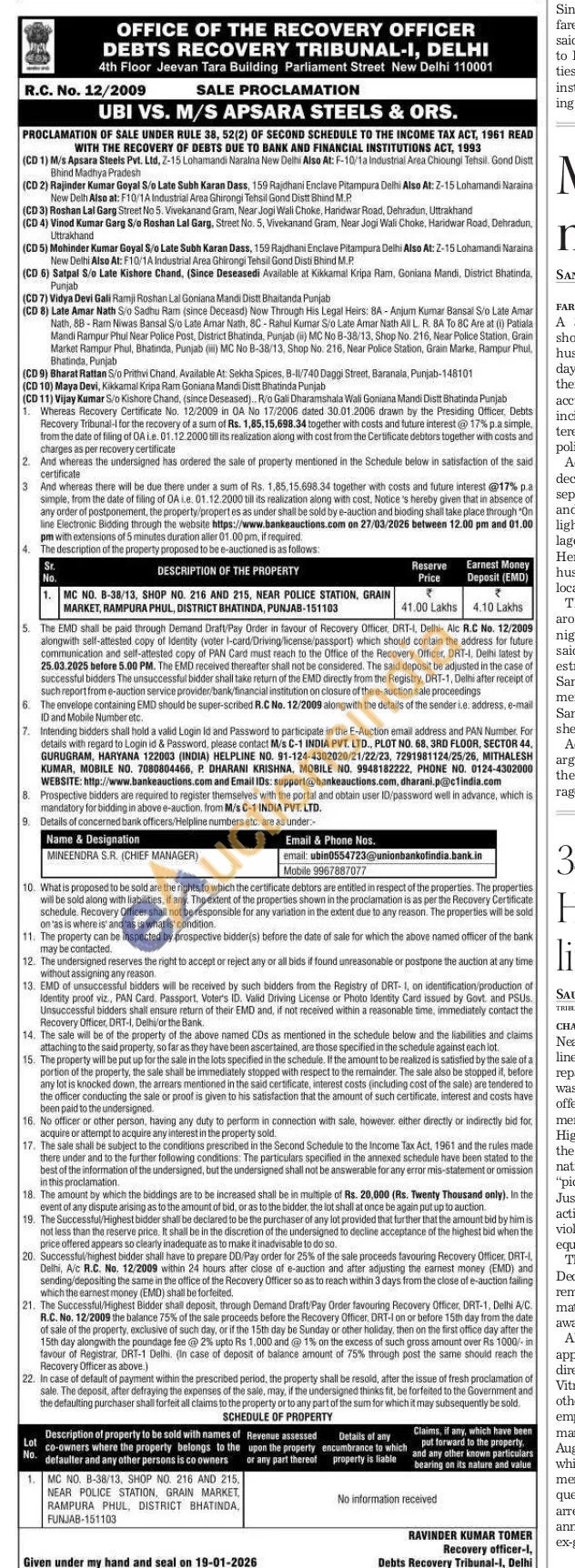 MC NO. B-38/13, SHOP NO. 216 AND 215, NEAR POLICE STATION, GRAIN MARKET, RAMPURA PHUL, DISTRICT BHATINDA, PUNJAB-151103