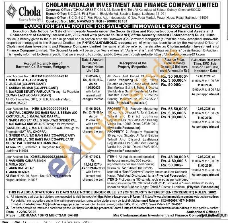 ITEM 1- All that piece and parcel of the house measuring 300 sq.yds. registered as per sale deed bearing vasika no. 7415 dated 16/05/1995 situated in "Taraf Gehlewal' locality known as New Subhash Nagar, Tehsil And District Ludhiana. (Physical Possession) ITEM 2-Plot bearing 100 sq.yds, registered as per sale deed bearing vasika no. 20,020 dated 22/03/2011, situated in "Taraf Gehlewal locality known as New Subhash Nagar, Tehsil & District, Ludhiana